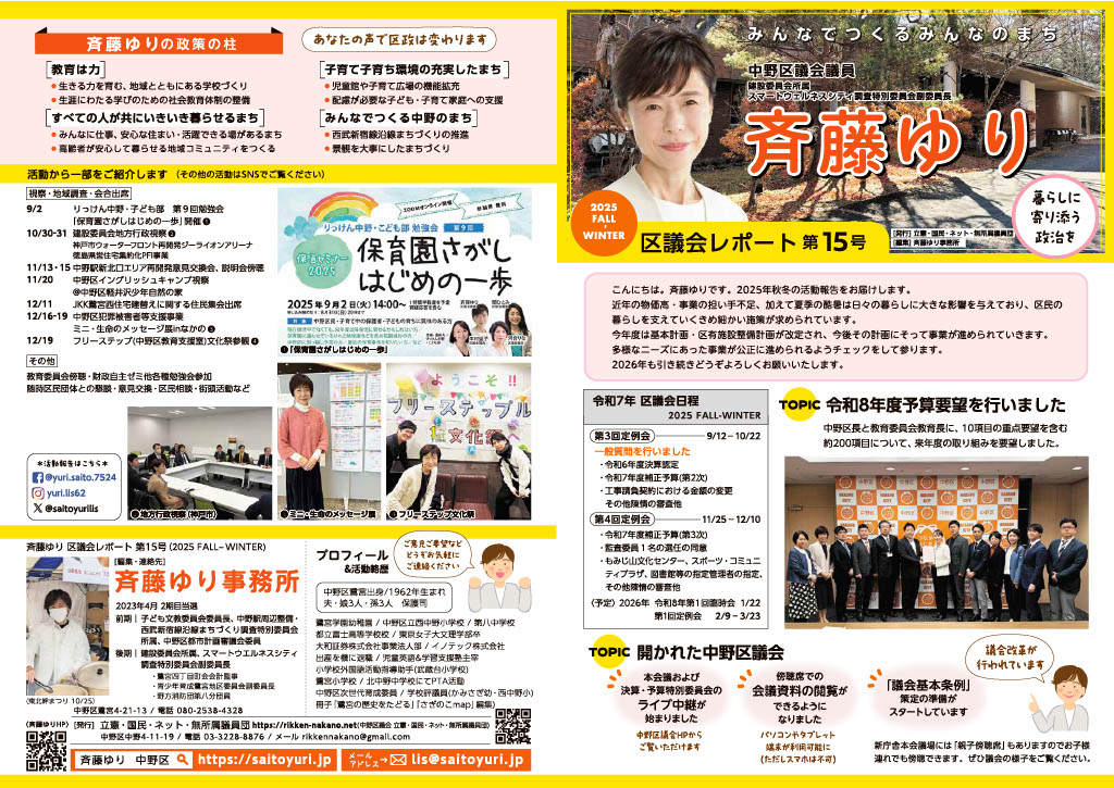 2026/01/20 区議会レポート 区議会レポート15号発行